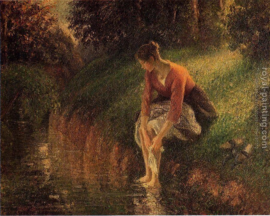 * Hand-painted Camille Pissarro Oil Painting Reproduction : Young Woman Bathing Her Feet