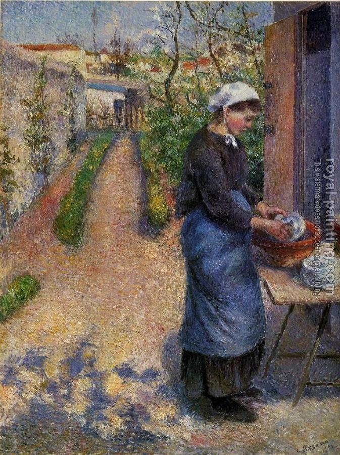 * Hand-painted Camille Pissarro Oil Painting Reproduction : Young Woman Washing Plates