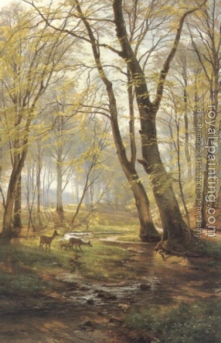 * Hand-painted Carl Fredrik Aagard Oil Painting Reproduction : A Woodland Scene With Deer