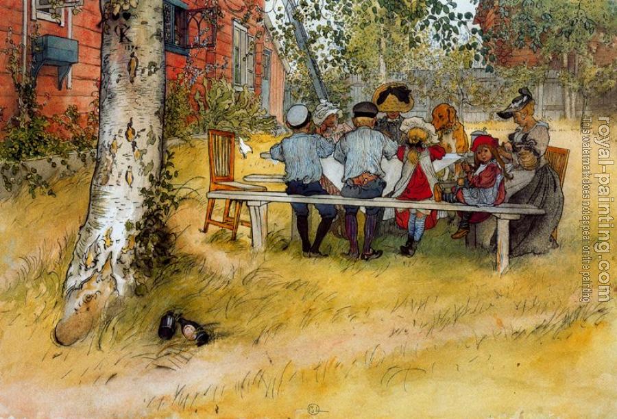 * Hand-painted Carl Larsson Oil Painting Reproduction : Breakfast under the Big Birch