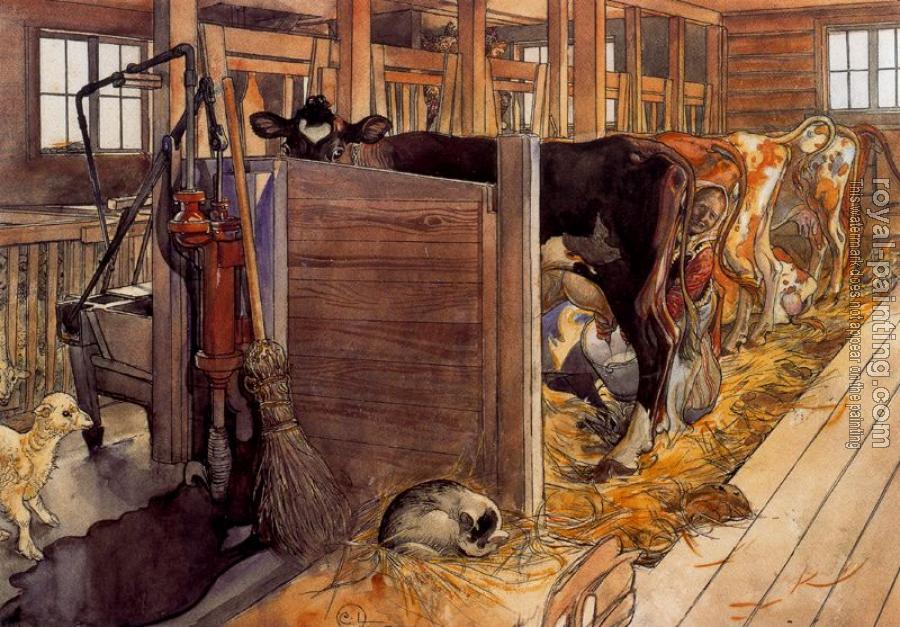 * Hand-painted Carl Larsson Oil Painting Reproduction : The Cowshed Carl Larsson