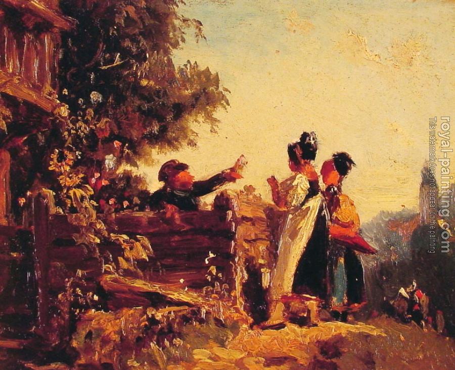 * Hand-painted Carl Spitzweg Oil Painting Reproduction : Swabian Girls at a Garden Fence