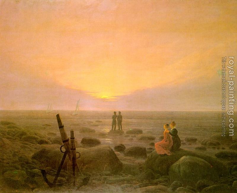 * Hand-painted Caspar David Friedrich Oil Painting Reproduction : Moon rising over Sea