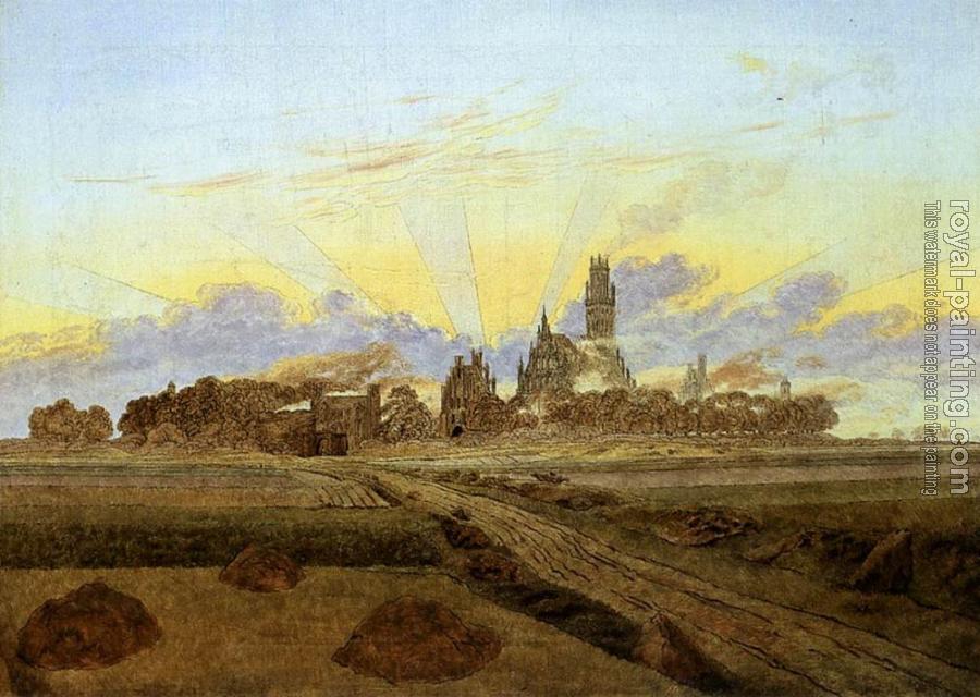 * Hand-painted Caspar David Friedrich Oil Painting Reproduction : Neubrandenburg In Flames