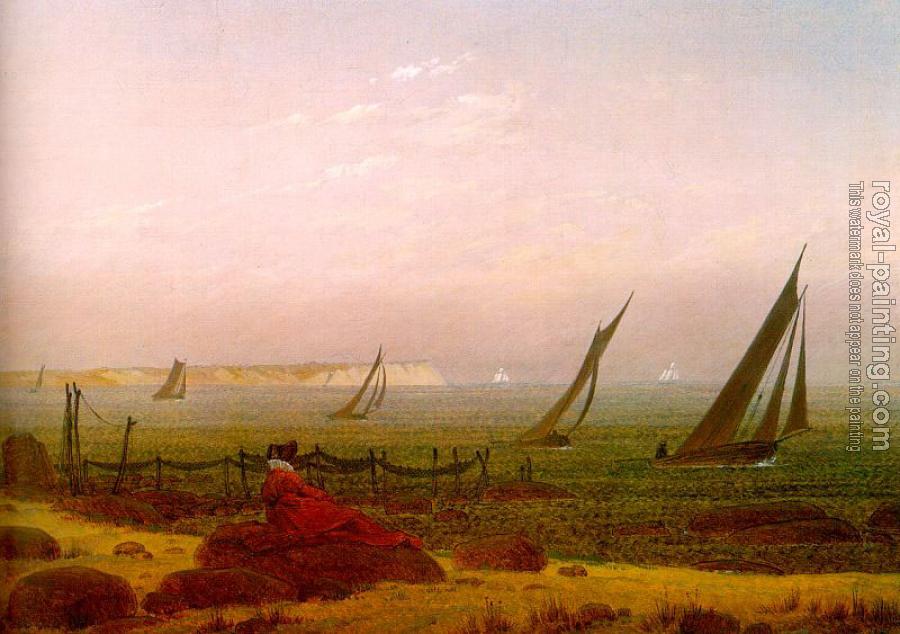 * Hand-painted Caspar David Friedrich Oil Painting Reproduction : Woman on the Beach of Rugen II