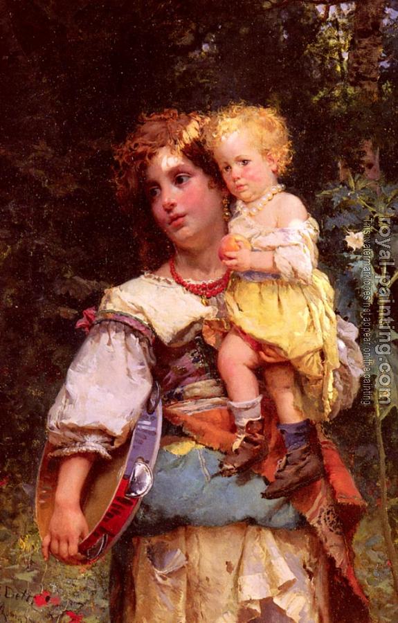 * Hand-painted Cesare-Auguste Detti Oil Painting Reproduction : Gypsy Woman and Child