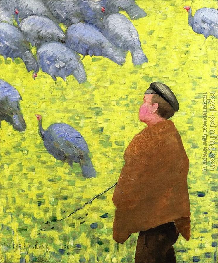 * Hand-painted Charles Angrand Oil Painting Reproduction : The guardian of turkeys