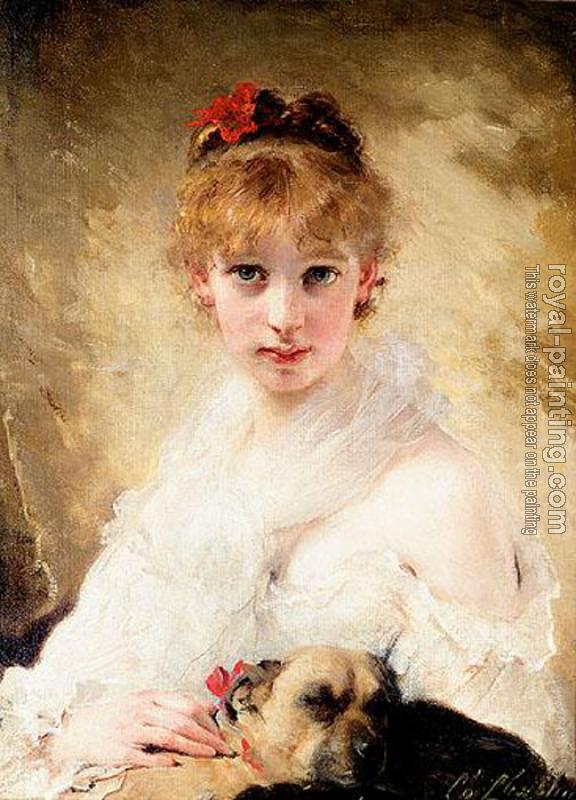 * Hand-painted Charles Chaplin Oil Painting Reproduction : Her Favourite Dog