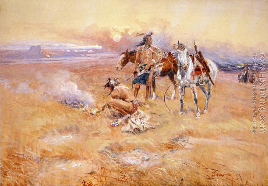 * Hand-painted Charles Marion Russell Oil Painting Reproduction : Blackfeet Burning Crow Buffalo Range
