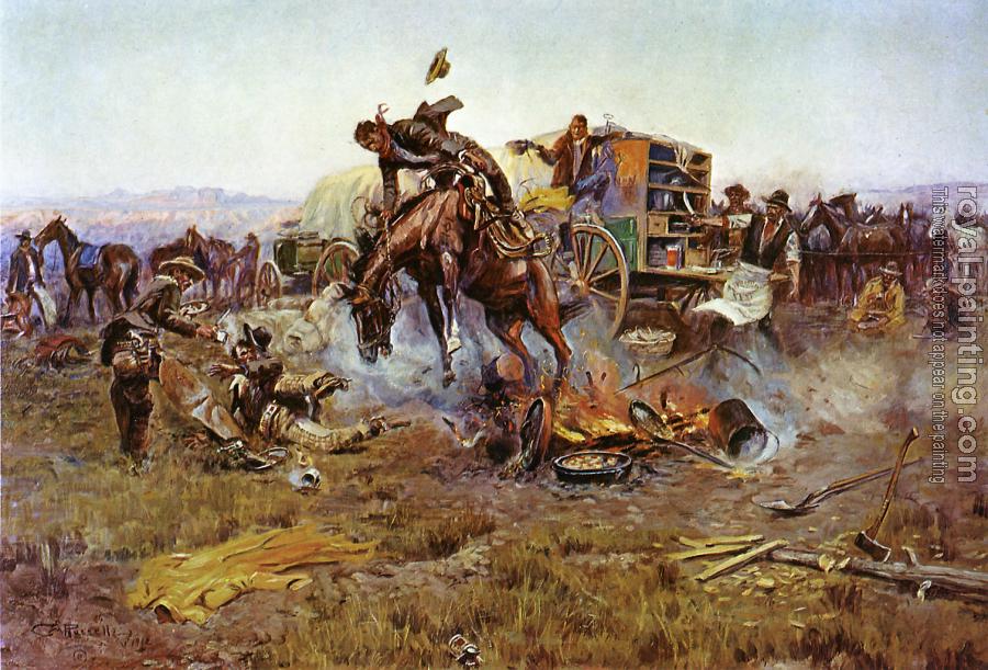 * Hand-painted Charles Marion Russell Oil Painting Reproduction : Bronc to Breakfast
