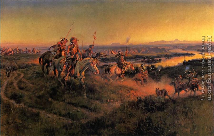 Indian paintings. 51773-Charles Marion Russell-The_Salute_of_the_Robe_Trade.jpg