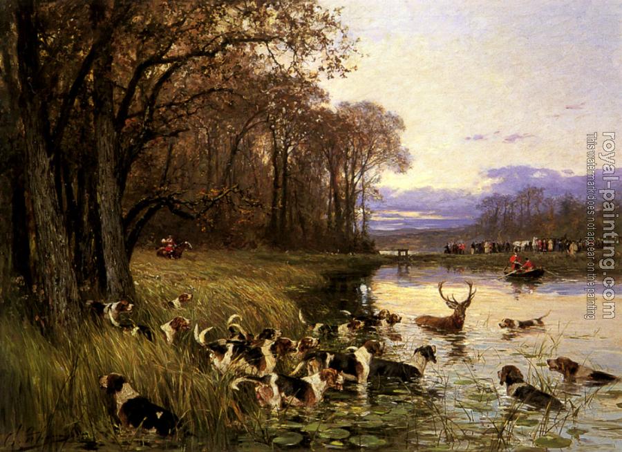 * Hand-painted Charles Olivier De Penne Oil Painting Reproduction : A Stag At Bay