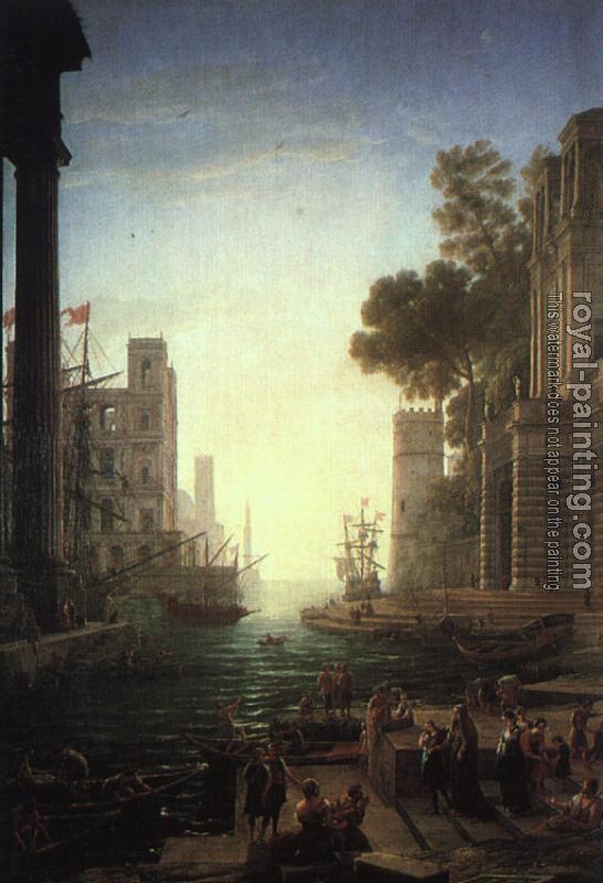 * Hand-painted Claude Lorrain Oil Painting Reproduction : Embarkation of St Paula Romana at Ostia