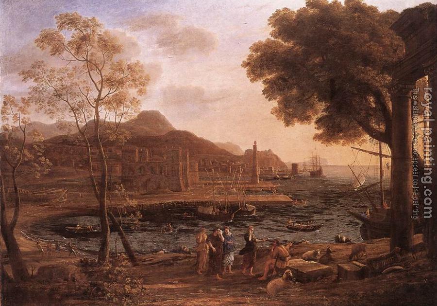 * Hand-painted Claude Lorrain Oil Painting Reproduction : Harbour Scene with Grieving Heliades