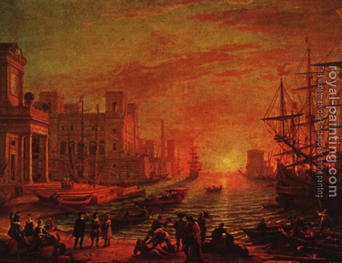 * Hand-painted Claude Lorrain Oil Painting Reproduction : Sea Port at Sunset