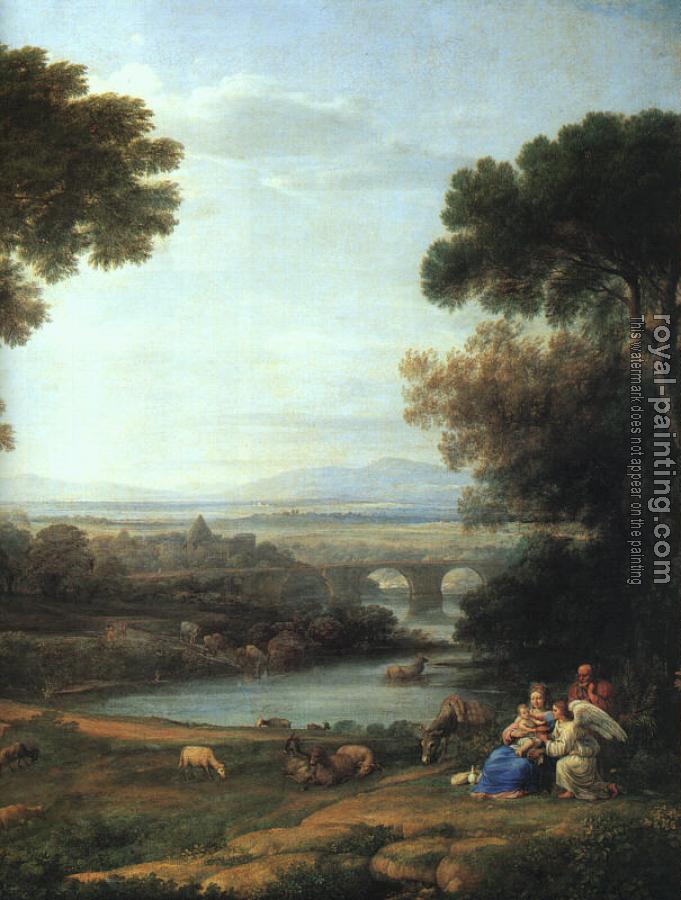 * Hand-painted Claude Lorrain Oil Painting Reproduction : The Rest on the Flight into Egypt, detail