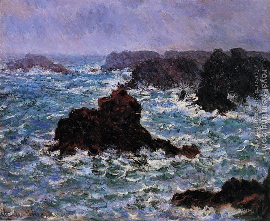 * Hand-painted Claude Oscar Monet Oil Painting Reproduction : Belle-Ile, Rain Effect