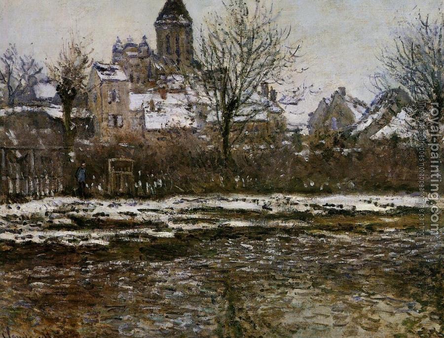 * Hand-painted Claude Oscar Monet Oil Painting Reproduction : Church at Vetheuil, Snow