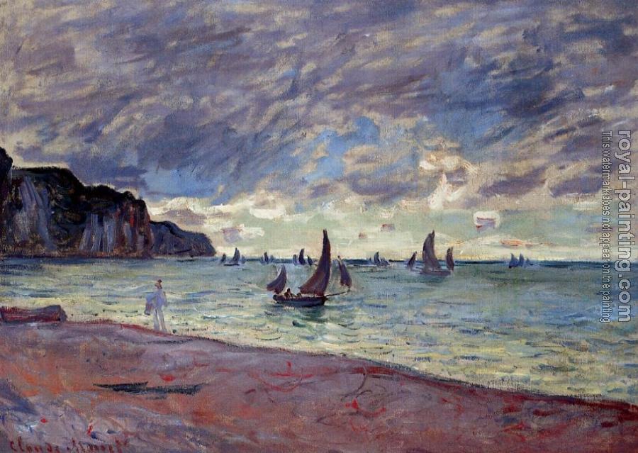 Fishing Boats by the Beach and the Cliffs of Pourville by Claude Oscar Monet