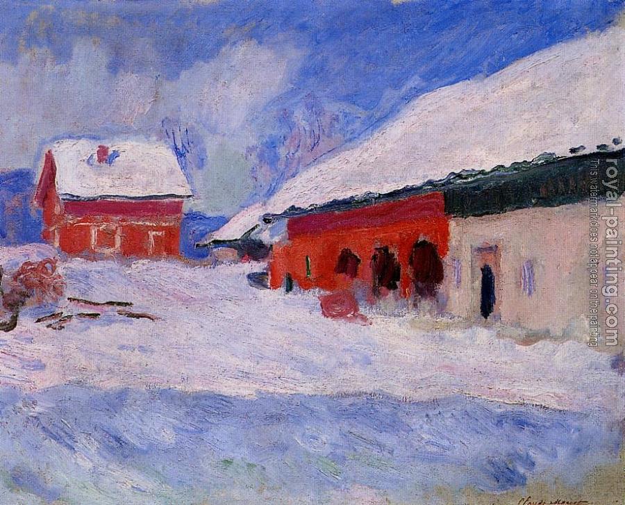 Red Houses at Bjornegaard in the Snow, Norway by Claude Oscar Monet