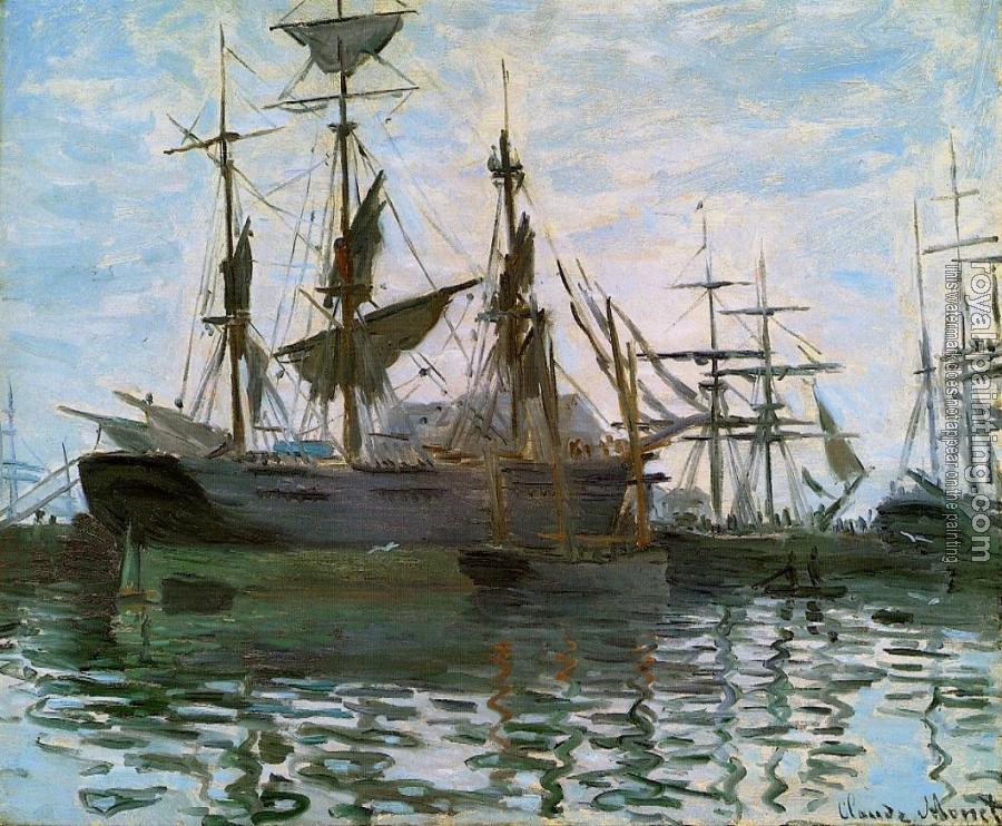 * Hand-painted Claude Oscar Monet Oil Painting Reproduction : Ships in Harbor