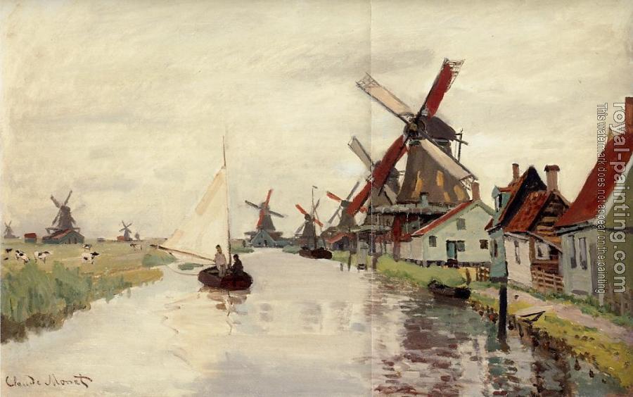 * Hand-painted Claude Oscar Monet Oil Painting Reproduction : Windmills in Holland