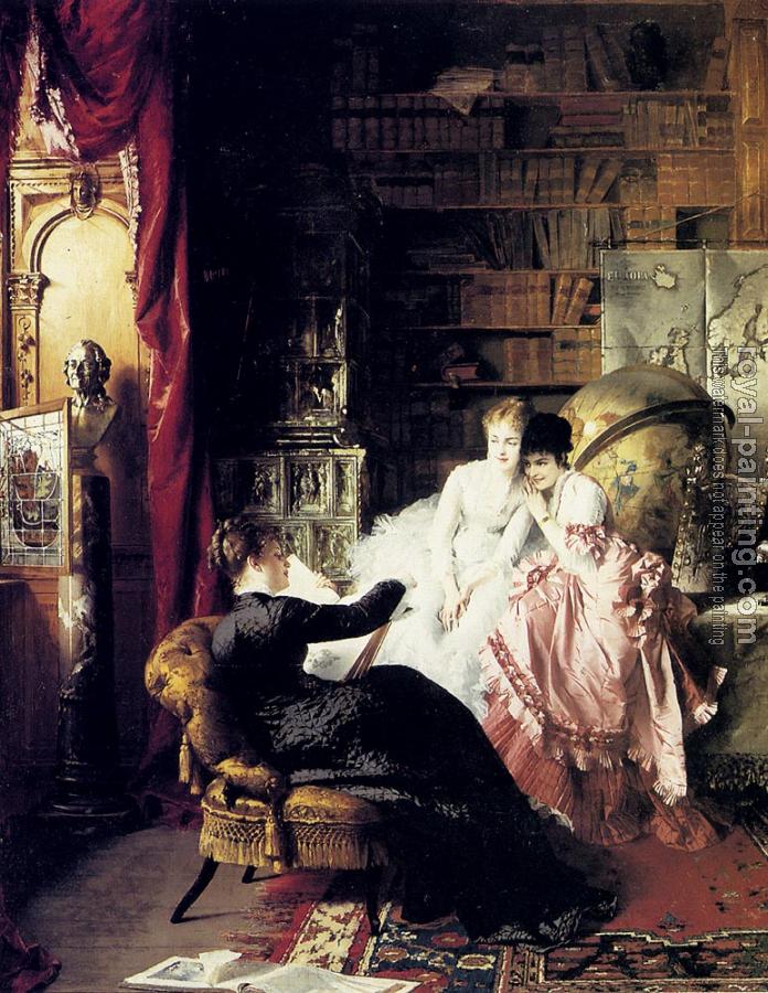 * Hand-painted Conrad Kiesel Oil Painting Reproduction : The Lesson