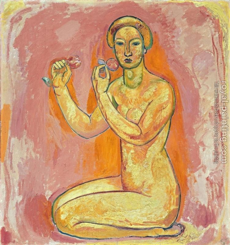 * Hand-painted Cuno Amiet Oil Painting Reproduction : Female nude with flowers (the truth)