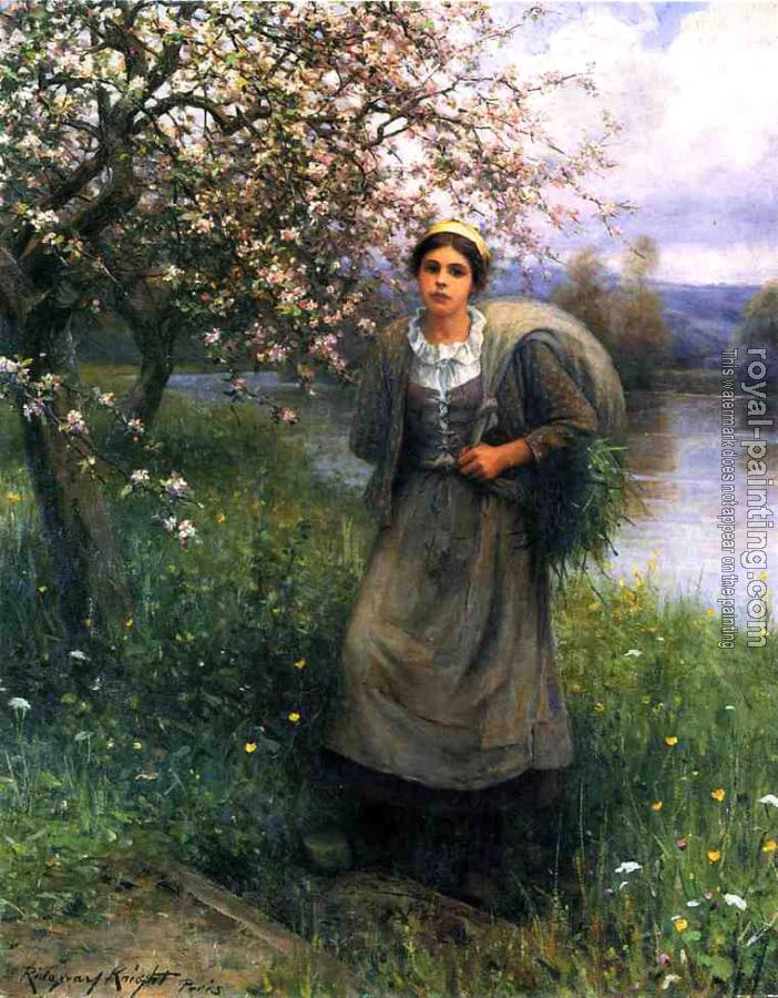 * Hand-painted Daniel Ridgway Knight Oil Painting Reproduction : Apple Blossoms in Normandy