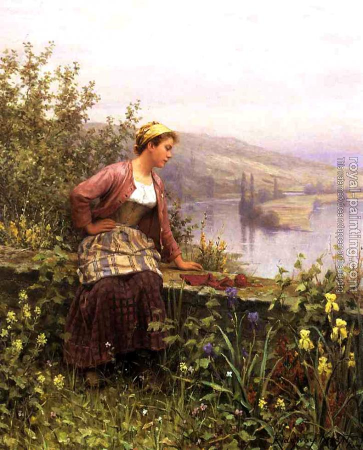 Brittany Girl Overlooking Stream by Daniel Ridgway Knight