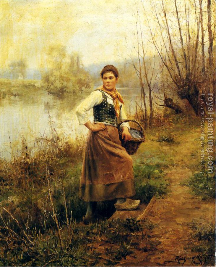 * Hand-painted Daniel Ridgway Knight Oil Painting Reproduction : Country Girl