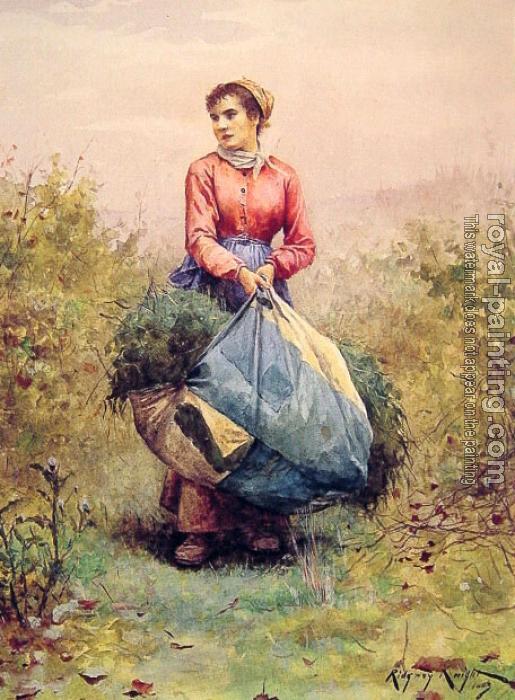 * Hand-painted Daniel Ridgway Knight Oil Painting Reproduction : Gathering Leaves