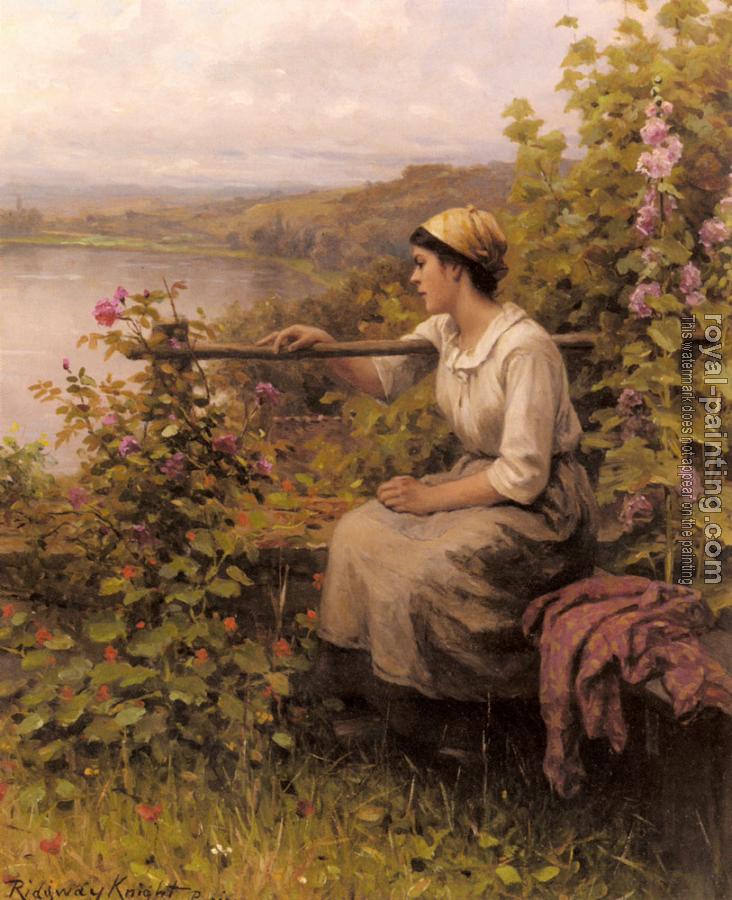 * Hand-painted Daniel Ridgway Knight Oil Painting Reproduction : Resting In The Garden