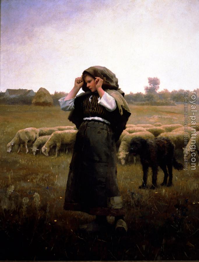 * Hand-painted Daniel Ridgway Knight Oil Painting Reproduction : Shepardess and her Flock