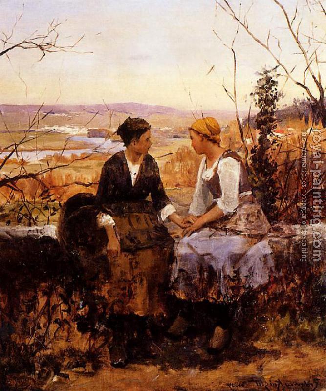 * Hand-painted Daniel Ridgway Knight Oil Painting Reproduction : The Two Friends