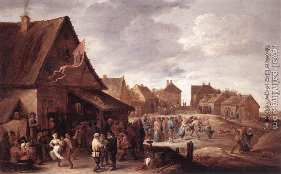 * Hand-painted David Teniers The Younger Oil Painting Reproduction : Village Feast