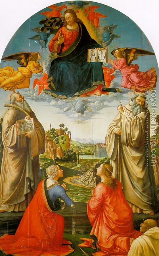 * Hand-painted Domenico Ghirlandaio Oil Painting Reproduction : Christ in Heaven with Four Saints and a Donor