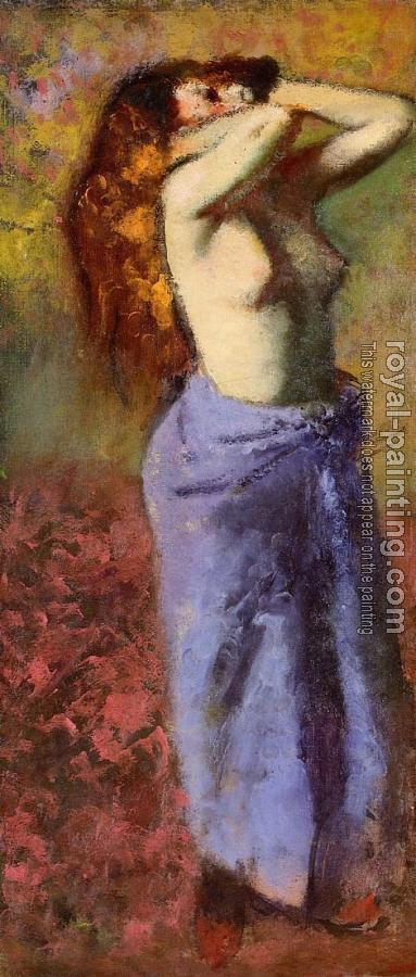 * Hand-painted Edgar Degas Oil Painting Reproduction : Woman in a Blue Dressing Gown, Torso Exposed