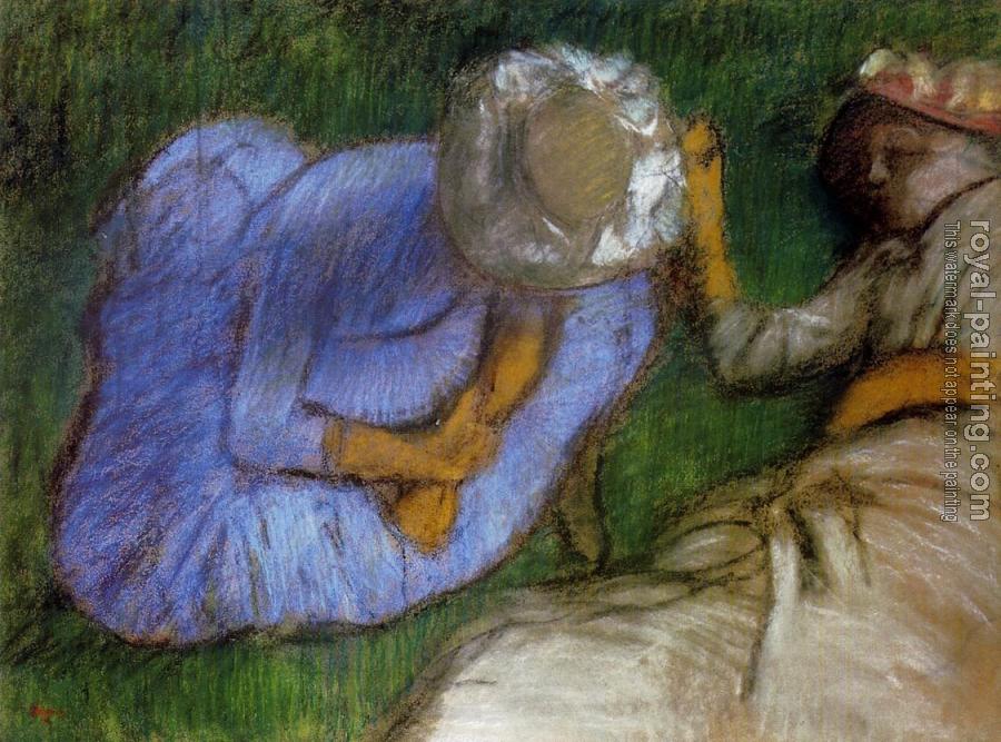 * Hand-painted Edgar Degas Oil Painting Reproduction : Young Women Resting in a Field
