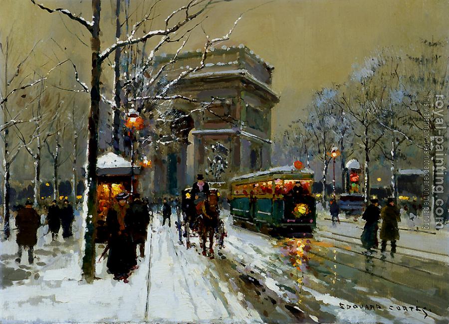 * Hand-painted Edouard Cortes Oil Painting Reproduction : L'Arc de Triomphe, Hiver