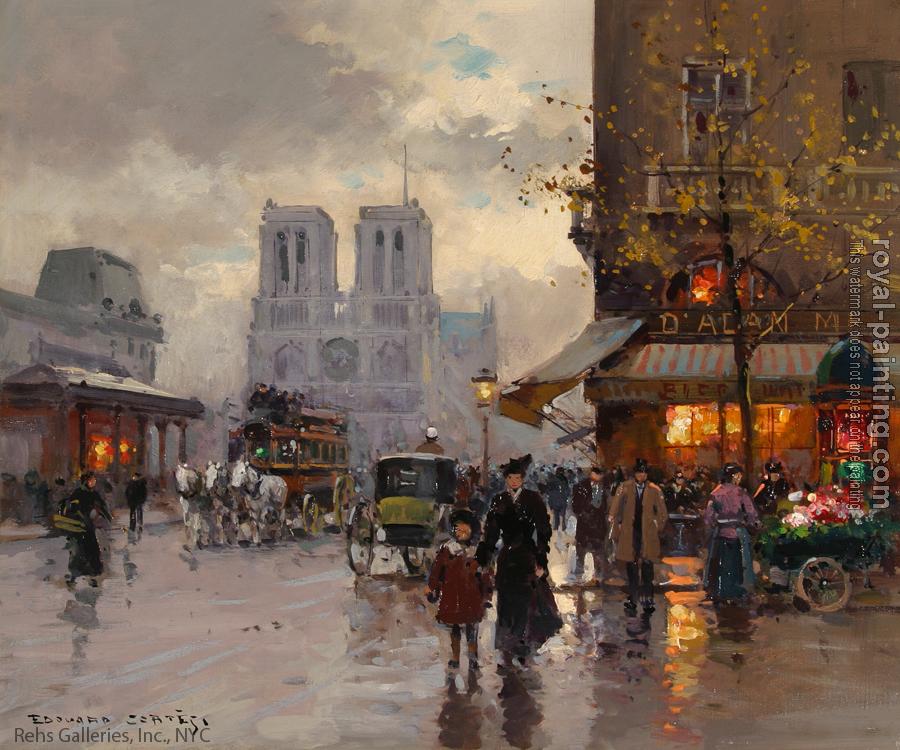 * Hand-painted Edouard Cortes Oil Painting Reproduction : Place St Michel, Notre Dame III