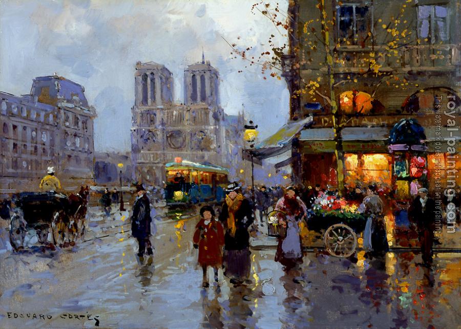 * Hand-painted Edouard Cortes Oil Painting Reproduction : Place St Michel, Notre Dame