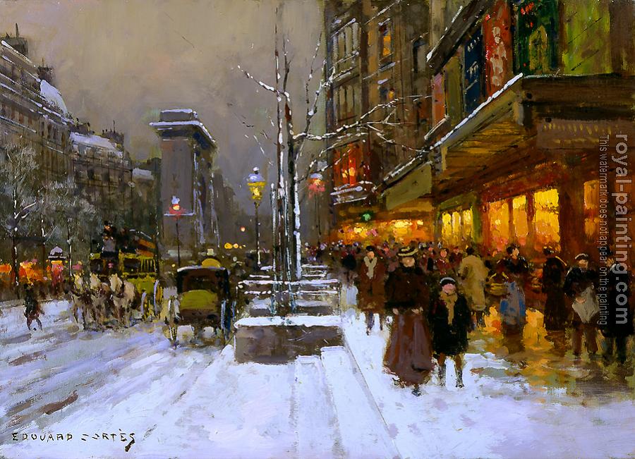 * Hand-painted Edouard Cortes Oil Painting Reproduction : Porte St Denis in Winter