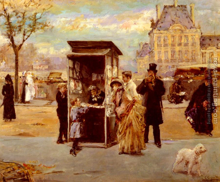 * Hand-painted Eduardo Leon Garrido Oil Painting Reproduction : The Kiosk By The Seine