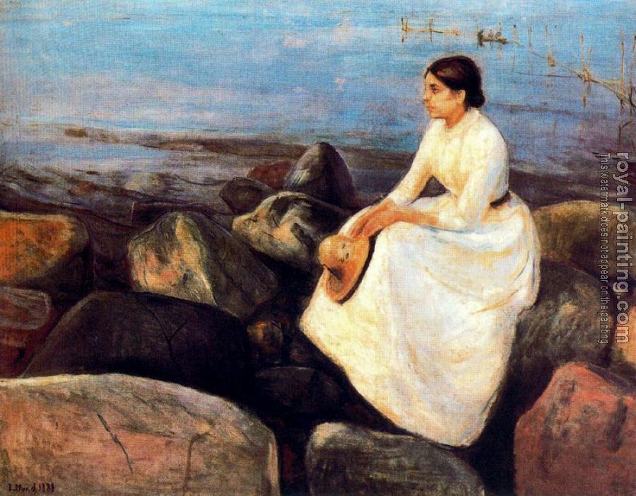 * Hand-painted Edvard Munch Oil Painting Reproduction : Summer Night (Inger on the Shore)