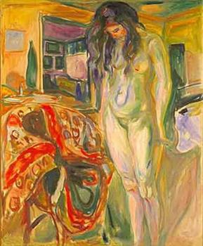 Self-portrait. Between the clock and the bed