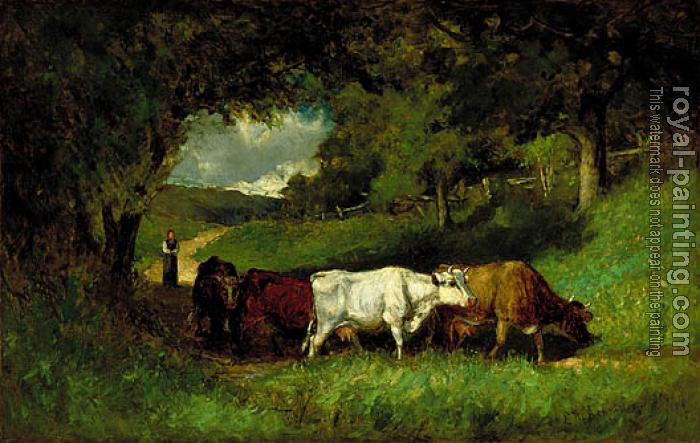 * Hand-painted Edward Mitchell Bannister Oil Painting Reproduction : Driving home the cows