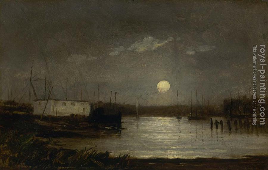* Hand-painted Edward Mitchell Bannister Oil Painting Reproduction : Moon over a harbor