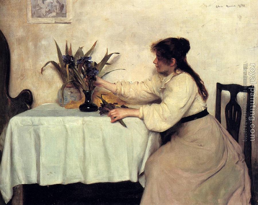 * Hand-painted Edwin Harris Oil Painting Reproduction : Arranging The Irises