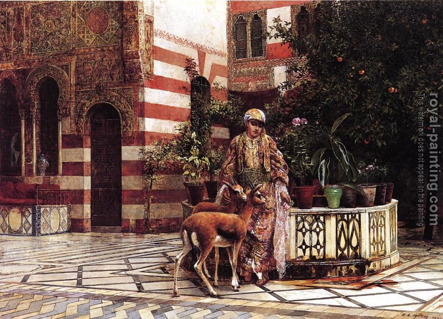 * Hand-painted Edwin Lord Weeks Oil Painting Reproduction : Girl in a Moorish Courtyard